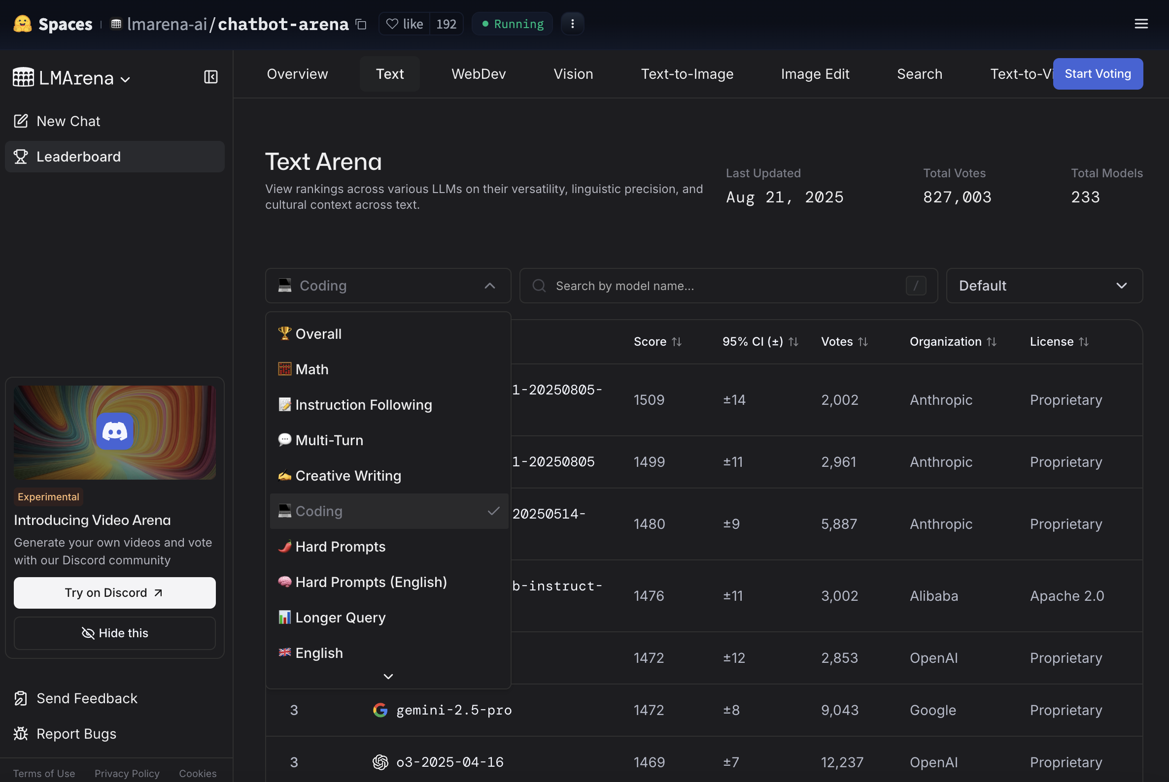 LMArena is a battle field for different large language generative models. Everytime you prompt a question, 2 anonymous AI model will be asked to answer your question, and you will vote which model gave better response. After you give your vote, the system will reveal the models’ names. After millions of pairwise comparisons are made, an Elo-rating algorithm is used to rank the AI models based on people’s preferences. You can see the current ranking of different LLMs based on task on the LMArena Leaderboard