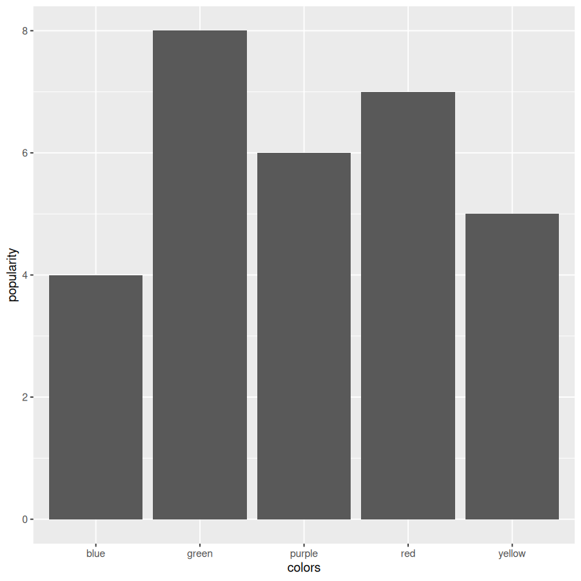 c()creates simple lists (called vectors)ggplot()starts every plotgeom_col()makes bar chartsaes(x = , y = )tells R what goes on each axis