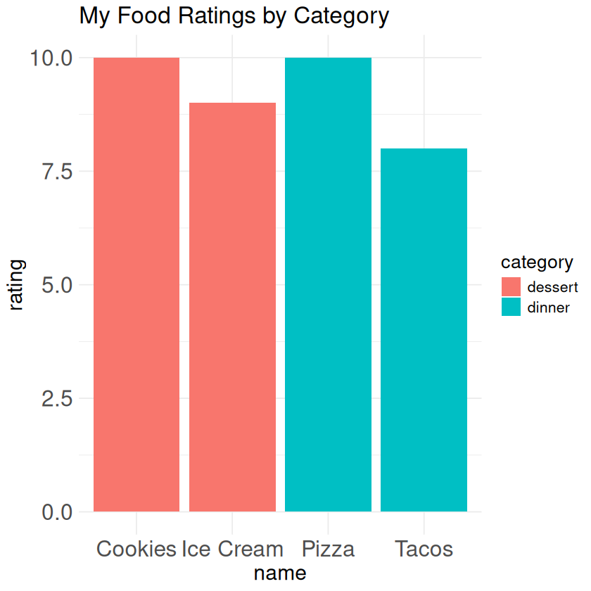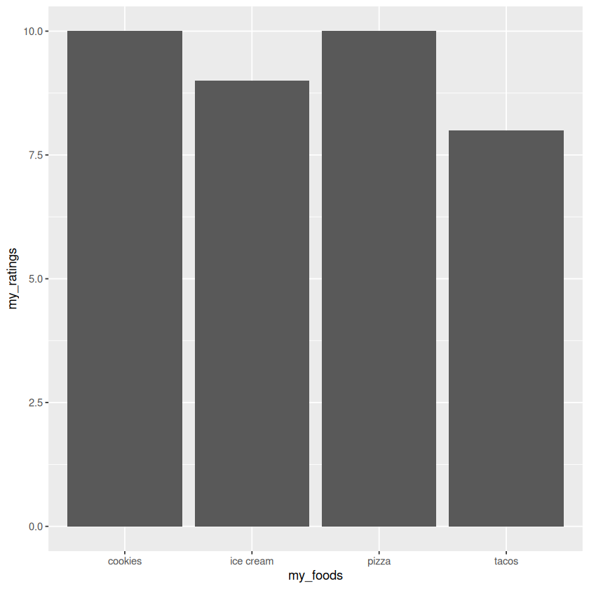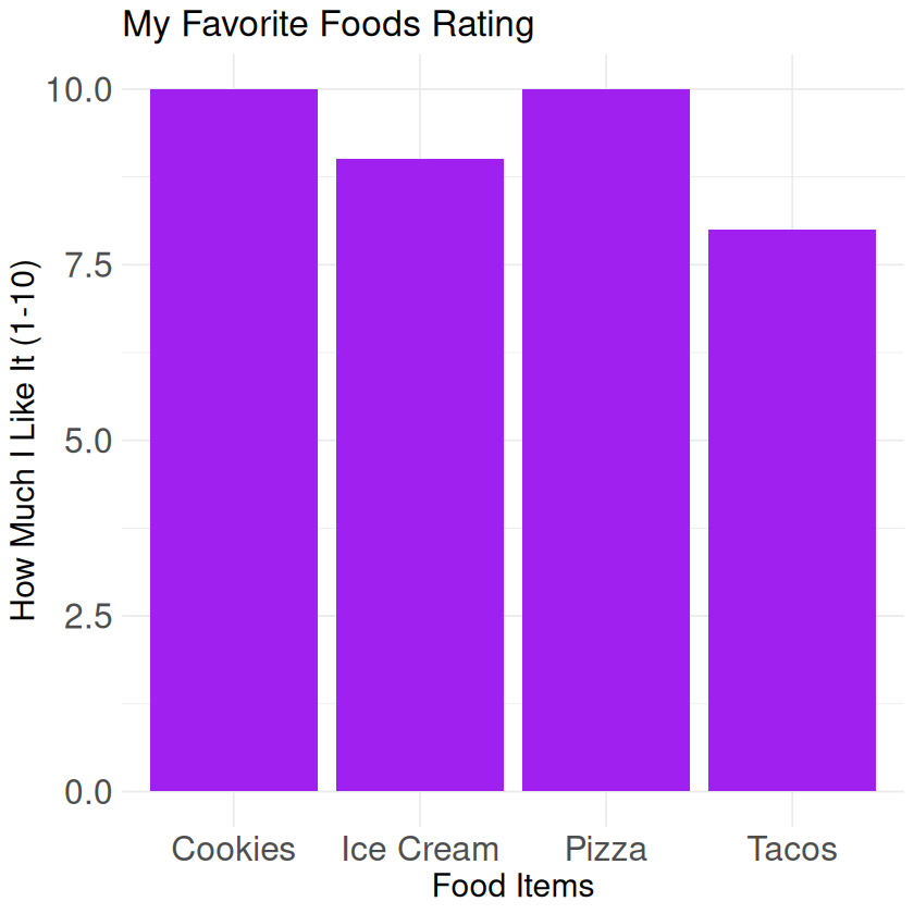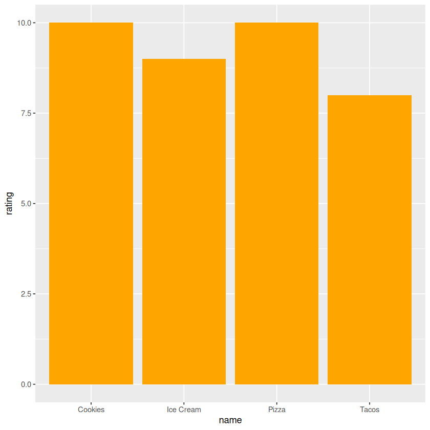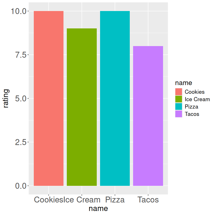 name = c("Pizza", "Ice Cream", "Tacos", "Cookies"),