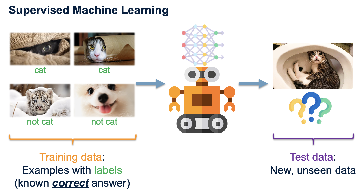 💡 What is Training and Testing Data? Just like studying for a test, computers need practice data (training) and then get tested on new data they’ve never seen before!