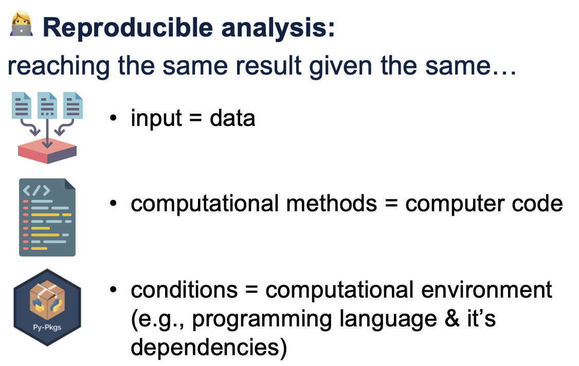 Reproducible 🔄 = Others can follow your steps and get the same results