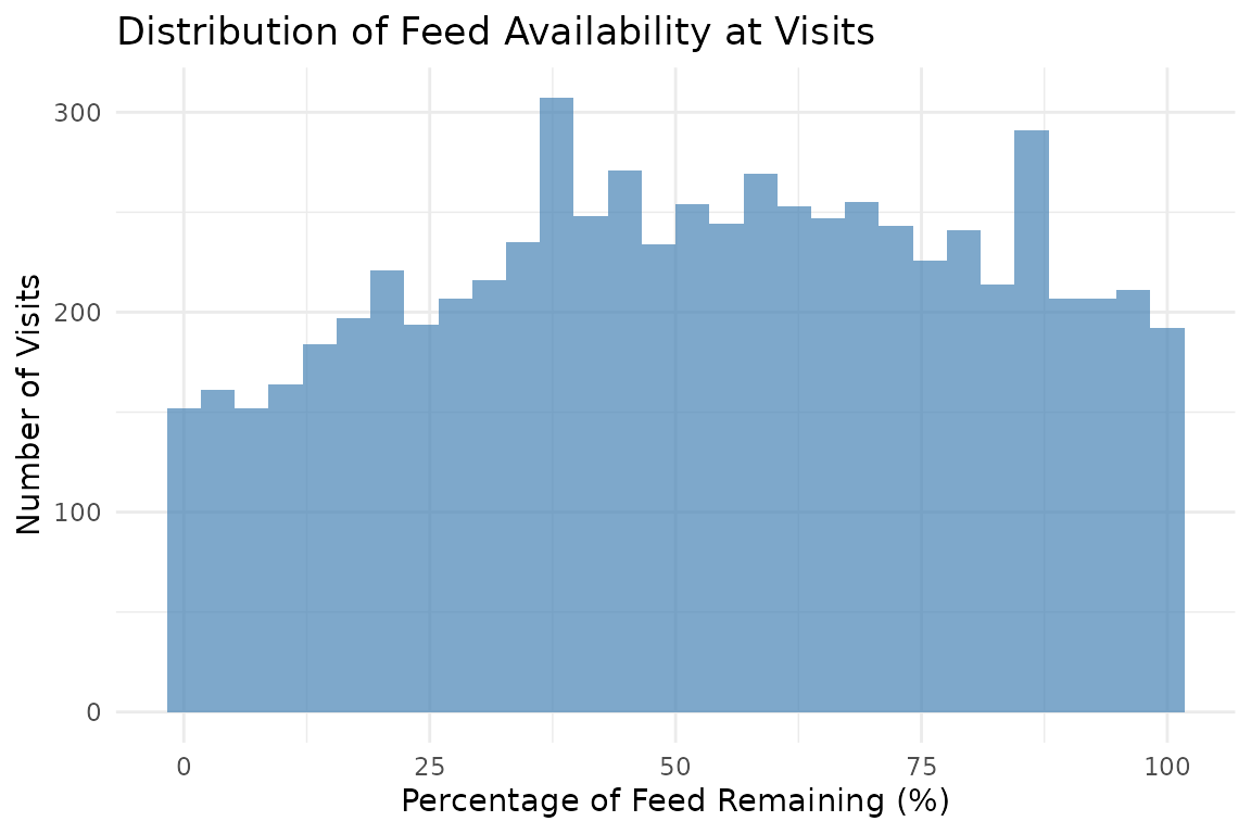 - Per-visit availability: Calculated the percentage of feed remaining at each visit