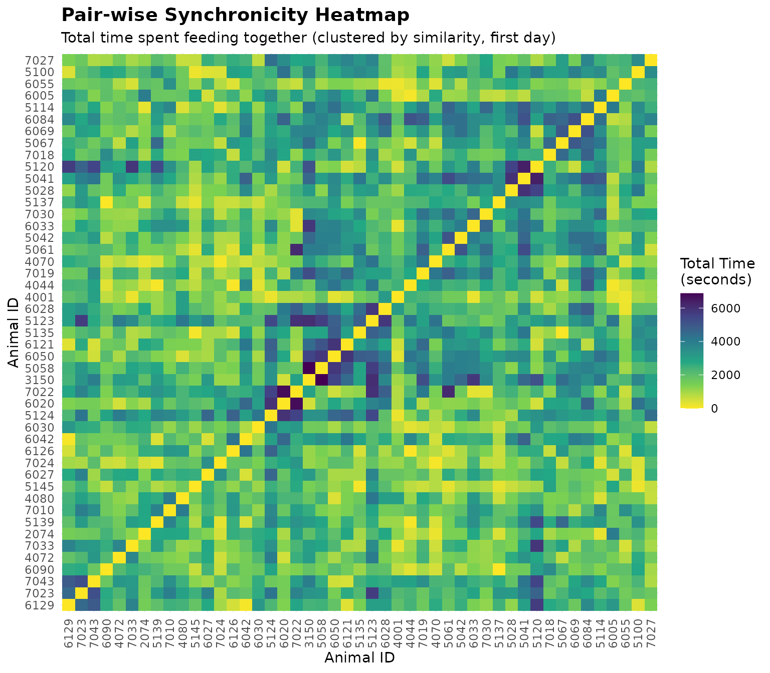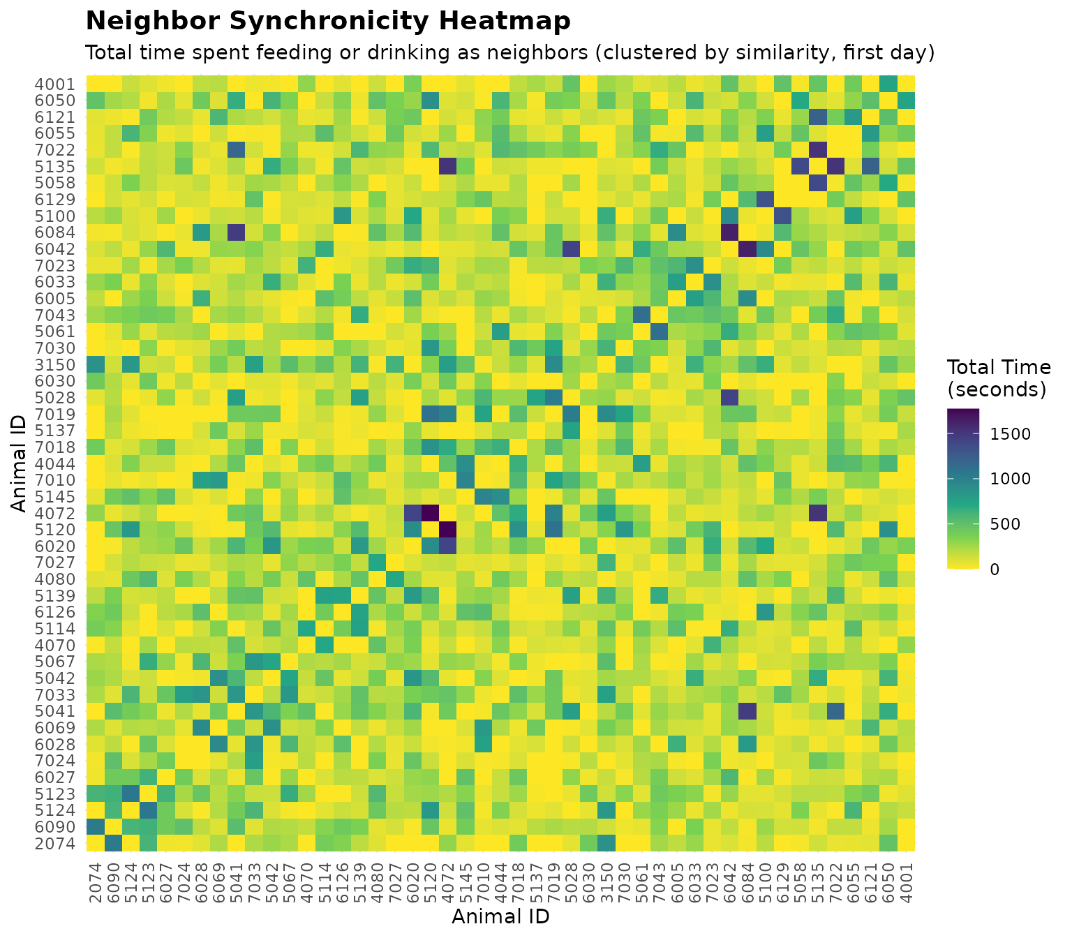 # Visualize neighbor feeding time as a heatmap (clustered by similarity)